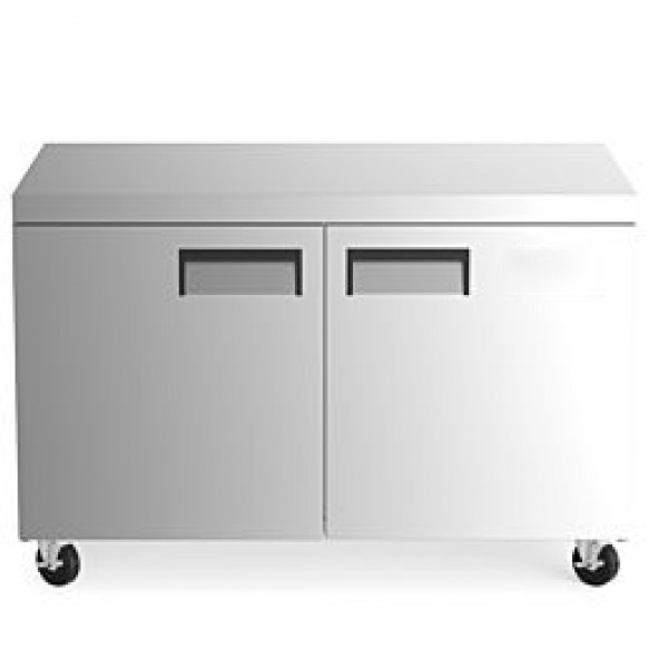Description Fit your commercial refrigeration under a counter or worktable, or use it as a worktop refrigerator with the Wowcooler 48" commercial undercounter refrigerators. Each unit features a durable stainless steel exterior and interior including a heavy duty 2" stainless steel work surface strong enough for cutting or mixing and smooth enough to prepare foods. Optional low profile casters can lower these units by up to 1.5 inches, allowing you to fit it under any standard height worktable. the 29.5" depth is narrow enough to fit into small kitchens or even behind a bar or counter in your shop. All units come with pre-installed casters and shelves. 4" welded backsplash is optional.