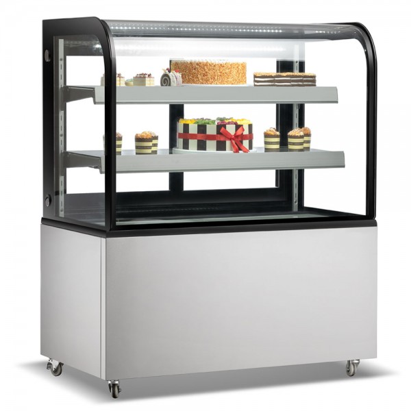Counter Height At 48" tall, this counter height bakery display case is low enough to use the top surface to work on, to play an additional small non refrigerated display case, or to handle cash and transact business with customers. But with 2 shelves plus the base level available for product, there is still ample room to showcase your foods.