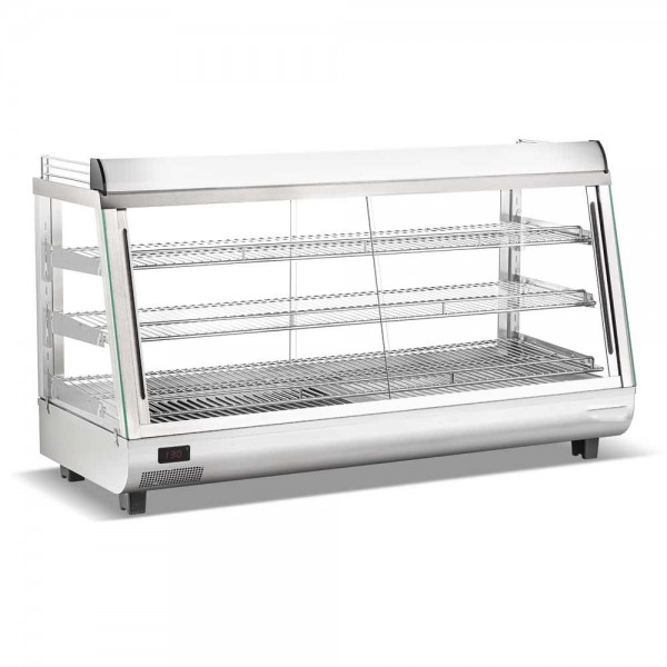 Description The WowShowcase heated dual access countertop display case is a heated countertop merchandiser that will keep your food at safe warm temperatures while increasing impulse sales. Features front and rear access for both employees and customers.